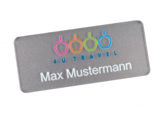 Staffelpreise für die Standardversion 70x25 mm - silberfarbig Digitaldruck mit Magnetbefestigung