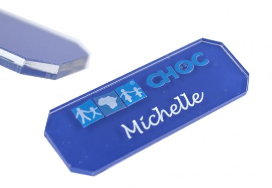 Topaktuelles Namensschild aus hochwertigem Acrylglas (Plexiglas®) - 3mm stark. Die laserpolierten Kanten bestechen durch Ihre sauberen und glasklaren Kanten.Ein Hingucker für Ihren Auftritt beim Kunden. Der Logodruck erfolgt wahlweise im Vorder- oder Hinterdruck. Bei diesem Schild sind bezüglich der Außenform keine Grenzen gesetzt.